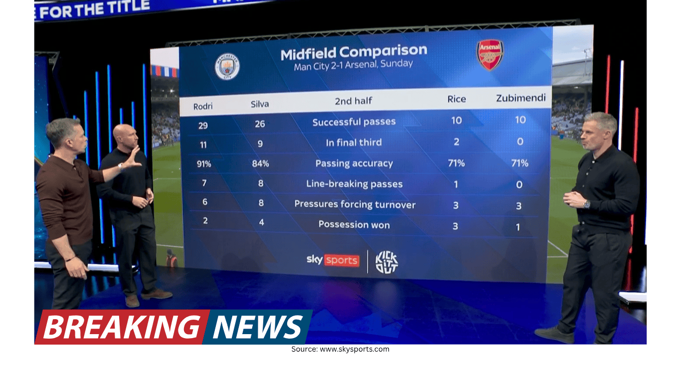 In Carragher’s framing, Arsenal’s midfield pressure early on was both aggressive and productive. Within the opening 15 minutes, Arsenal won possession in the final third six times — a figure Carragher highlighted as the most achieved by any side in the Premier League this season. That early spell suggested Arsenal could disrupt City’s rhythm and force mistakes in dangerous areas.